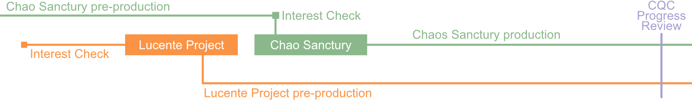 Lucente Project will be in pre-production while the story outline and art design is planned out. This needs to be completed before contributors can be taken on, this will take at least 6 months to complete.While LucPro is in pre-production Chao Sanctury will be be in full production. CQC is avoiding working on two projects at one time, so CQC will be focusing on Chao Sanctury while LucPro cooks in the background.